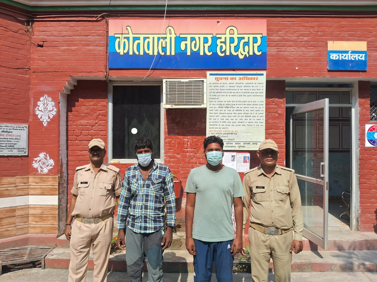 जानकारी के अनुसार कोतवाली नगर पुलिस को सूचना मिली कि चौकी मायापुर से पुराना रानीपुर मोड के पास दो व्यक्ति सडक के बीच में शराब के नशे में उत्पात मचा रहे थे तथा आपस में मारपीट में उतारु थे। जानकारी करने पर ज्ञात हुआ कि दोनो पक्ष आपस में पैसे के लेन—देन को लेकर आपस में लडाई— झगडा कर रहे हैं व एक दूसरे पर पत्थर फेंक रहे थे। जिन्हे मौके पर काफी समझाया गया तो उक्त दोनो पक्ष मारने मरने की बात करने लगे तथा मारपीट में उतारु हुए। जिनके द्वारा संज्ञेय अपराध करने की प्रबल सम्भावना के दृष्टिगत पुलिस द्वारा उक्त दोनो को गिरफ्तार किया गया। पूछताछ में उन्होने अपना नाम संजीव कुमार पुत्र साधुराम निवासी ग्राम अथाई थाना भोपा जिला मुज्जफर नगर उत्तर प्रदेश, हाल पता लेवर कॉलोनी व आकाश कुमार पुत्र प्रदीप कुमार निवासी शिमली थाना लक्सर जनपद हरिद्वार बताया।
