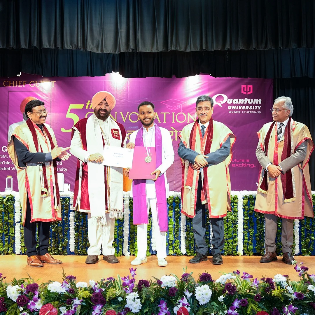रुड़की । राज्यपाल लेफ्टिनेंट जनरल गुरमीत सिंह (से नि) ने आज क्वांटम विश्वविद्यालय, रुड़की के 5वें दीक्षांत समारोह में मुख्य अतिथि के रूप में प्रतिभाग किया। राज्यपाल ने उत्कृष्ट प्रदर्शन करने वाले विद्यार्थियों को गोल्ड मेडल प्रदान किए। इस अवसर पर विश्वविद्यालय में सर्वश्रेष्ठ उत्कृष्ट प्रदर्शन करने वाली छात्रा साक्षी राज को प्रेसिडेंस मेडल से सम्मानित किया गया। राज्यपाल ने विद्यार्थियों को अपने जीवन में बड़े लक्ष्य निर्धारित करने, परिश्रम और अनुशासन के साथ कार्य करने और समाज तथा राष्ट्र के प्रति अपनी जिम्मेदारियों को निभाने की प्रेरणा दी।