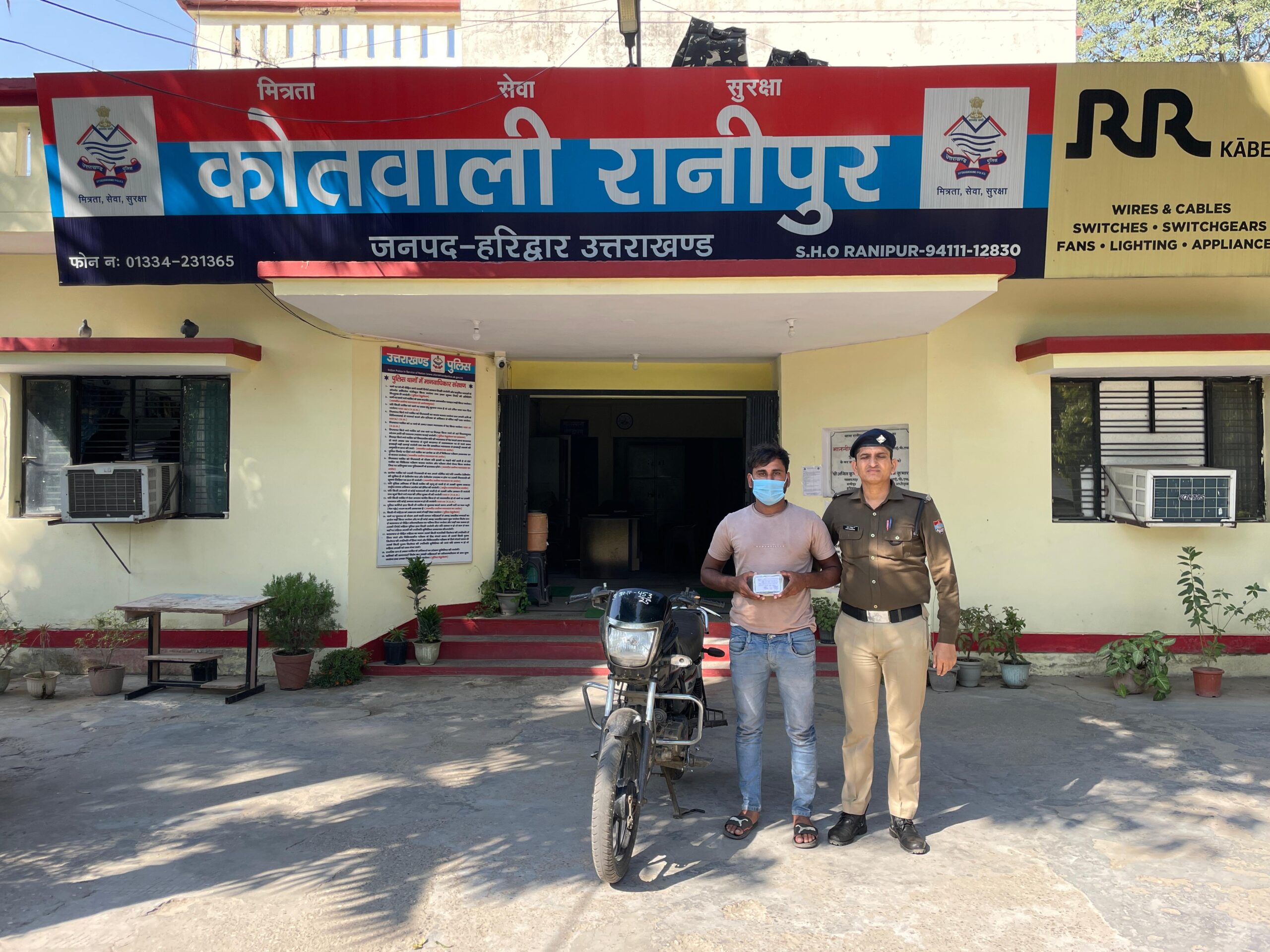 जानकारी के अनुसार बीते 11 नवम्बर को कोतवाली रानीपुर में आशुतोष सोनी पुत्र मदनलाल निवासी मकान संख्या पी —128, शिवालिक नगर द्वारा तहरीर देकर बताया गया था कि चार अज्ञात व्यक्तियों ने उनकी माता सुमित्रा सोनी को सम्मोहित कर सोने के कंगन, चेन, कान के टॉप्स, पर्स व एक रेडमी मोबाइल फोन धोखे से ठग लिए गये है। मामले की गम्भीरता को देखते हुए पुलिस ने तत्काल मुकदमा दर्ज कर आरोपियों की तलाश शुरू कर दी गयी। आरोपियों की तलाश में जुटी पुलिस टीम को बीती रात सूचना मिली कि उक्त वारदात में शामिल एक आरोपी आर्मी ग्राउंड शिवालिक नगर के कच्चे रास्ते से बाइक द्वारा आने वाला है। सूचना पर कार्यवाही करते हुए पुलिस ने बताये गये स्थान पर घेराबंदी कर एक संदिग्ध बाइक सवार को दबोच लिया गया। तलाशी के दौरान उसके पास से ठगे गये सोने के दो कंगन व घटना में प्रयुक्त बाइक बरामद हुई। पूछताछ में उसने अपना नाम अब्दुल गफ्फार पुत्र शेर मोहम्मद निवासी ग्राम शाहीपुर, थाना किठौर, जिला मेरठ बताया। बताया कि वह और उसके साथी दिलशाद उर्फ बॉबी, मुजाहिद व गुलजार दो मोटरसाइकिलों से हरिद्वार आए थे और शिवालिक नगर में एक महिला को बातों में लगाकर उसके गहने व पर्स/मोबाइल लेकर फरार हो गए थे। बरामद जेवरों को उन्होने मेरठ व मुजफ्फरनगर में बेचने की कोशिश की, परंतु बिल न होने और कंगन पिचके होने के कारण सुनारों ने लेने से मना कर दिया। जिस पर आज वह कंगन बेचने ज्वालापुर जा रहा था। बहरहाल पुलिस ने उसे न्यायालय में पेश कर जेल भेज दिया है। वहीं उसके तीन साथियो की तलाश की जा रही है।