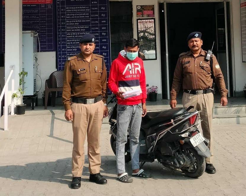 मिली जानकारी के अनुसार गत रात्रि कंट्रोल रूम के माध्यम से थाना डालनवाला को सूचना प्राप्त हुई कि स्कूटी सवार एक युवक महिला का मोबाइल छीन कर चंद्रलोक कॉलोनी हाथीबड़कला से सालावाला की ओर भागा है। सूचना की गंभीरता के दृष्टिगत एसएसपी के निर्देशो पर डालनवाला पुलिस द्वारा त्वरित कार्यवाही करते हुए आसपास के सीसीटीवी कैमरों को चैक करते हुए आरोपी की तलाश हेतु थाना क्षेत्र के सभी प्वाइंटों पर सघन चैकिंग अभियान चलाया गया तथा घटना के संबंध में पीड़िता प्रिया सिंह पुत्री नागेंद्र सिंह निवासी चंद्रलोक कॉलोनी डालनवाला, देहरादून की तहरीर पर थाना डालनवाला पर मुकदमा दर्ज किया गया। पुलिस द्वारा की गई त्वरित कार्यवाही तथा सघन चेकिंग अभियान के चलते पुलिस टीम द्वारा नयागांव रोड से चेकिंग के दौरान घटना को अंजाम देने वाले अमन गोस्वामी पुत्र शिव शंकर गोस्वामी निवासी सर्वे स्टेट हाथी बड़कला देहरादून मूल पता ग्राम पाराशरी जिला दतिया मध्य प्रदेश को लूटे गये मोबाइल आईफोन व घटना में प्रयुक्त स्कूटी के साथ मात्र आधे घण्टे के अन्दर नया गांव हाथीबड़कला देहरादून से गिरफ्तार किया गया। पूछताछ में उसके द्वारा बताया गया कि वह नशे का आदि है तथा अपने नशे की आवश्यकताओं की पूर्ति के लिए उसके द्वारा उक्त स्नेचिंग की घटना को अंजाम दिया गया था, पर पुलिस द्वारा की जा रही सघन चेकिंग के चलते वह भागने में कामयाब नहीं हो पाया।