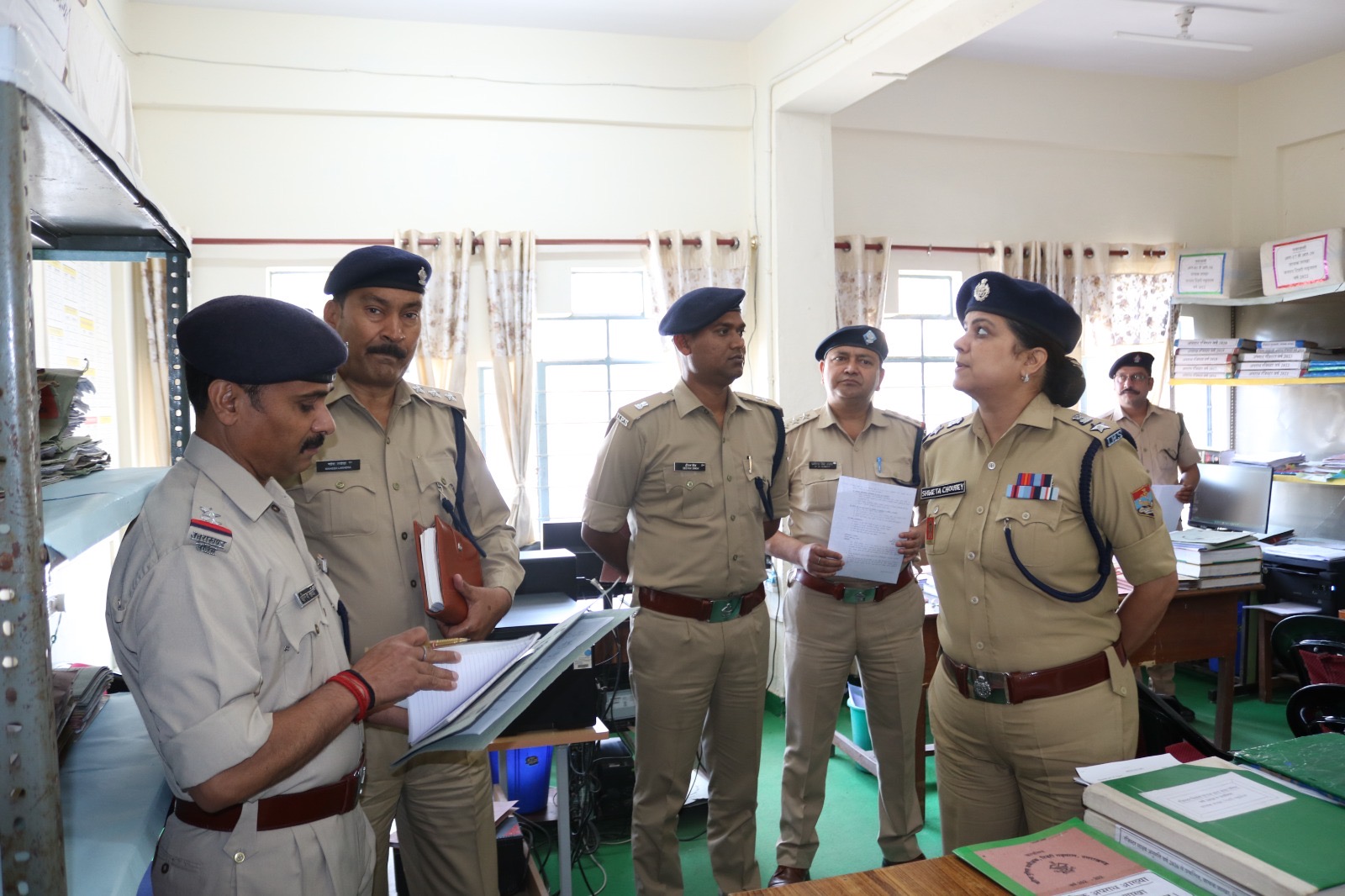 इसके पश्चात श्वेता चौबे द्वारा पुलिस कार्यालय की विभिन्न शाखाओं का निरीक्षण किया गया। निरीक्षण के दौरान अभिलेखों, कार्यप्रणाली एवं व्यवस्थाओं का अवलोकन कर संबंधित अधिकारियों/कर्मचारियों को आवश्यक दिशा—निर्देश दिए गए। उन्होंने कार्यों में पारदर्शिता, समयबद्धता एवं तकनीकी दक्षता बढ़ाने पर विशेष जोर दिया। उन्होंने यह भी निर्देशित किया कि जनपद में चल रहे अभियान—विशेष रूप से नशा उन्मूलन, साइबर अपराध रोकथाम, महिला सुरक्षा एवं यातायात व्यवस्था को और अधिक प्रभावी बनाया जाए। साथ ही, पुलिस—जन संवाद को मजबूत करने हेतु सामुदायिक पुलिसिंग कार्यक्रमों को प्राथमिकता देने के सभी अधिकारियों को निर्देश दिए।